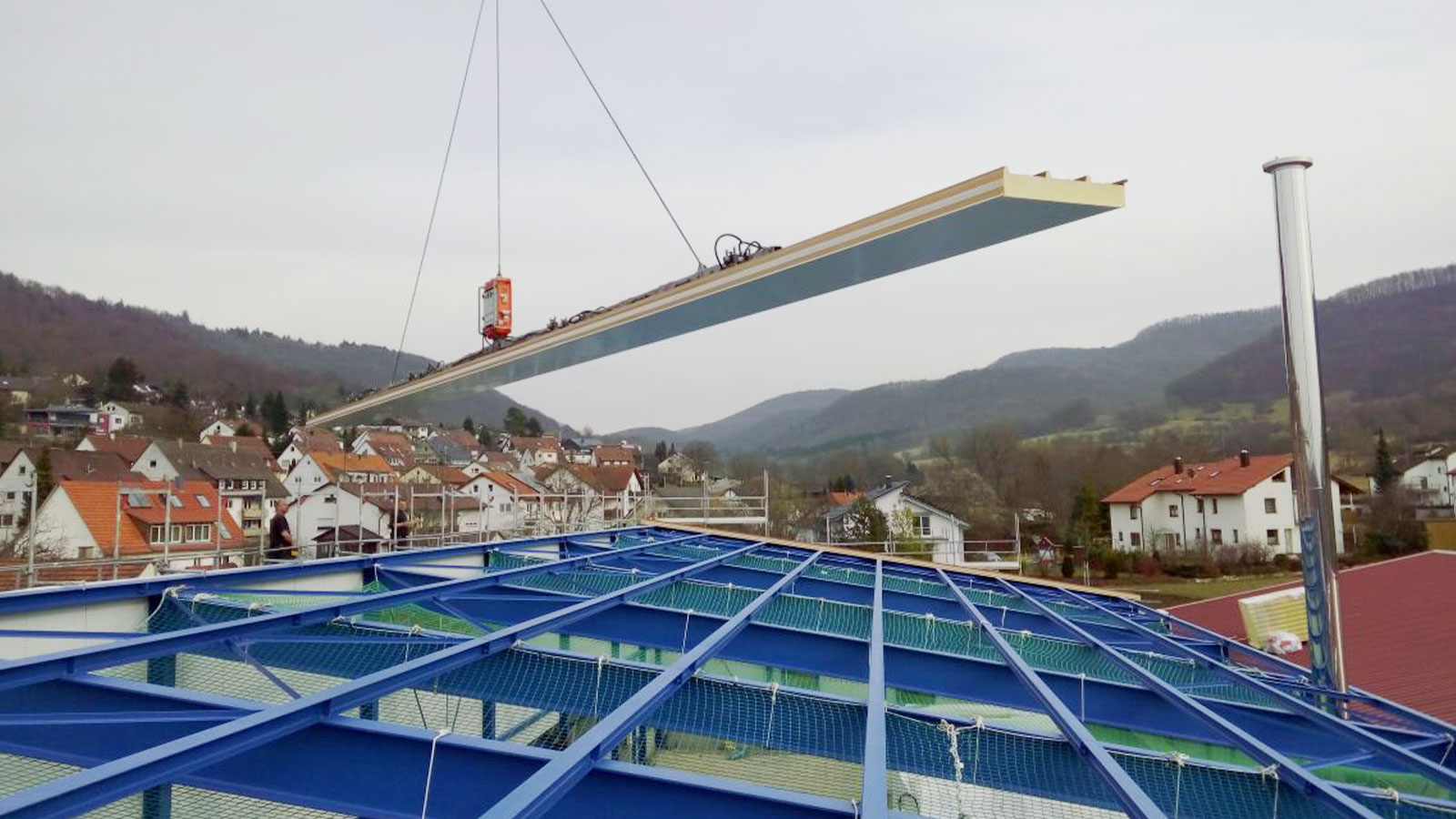 Im Bereich der Dacheindeckungen arbeiten wir mit einer breiten Palette an Metall-Leichtbauelementen und Profilen aus Stahl oder Aluminium. Ob Trapez-, Wellprofil, Sandwichpaneel oder Stehfalzsysteme – wir wählen das passende System für jede Aufgabenstellung.